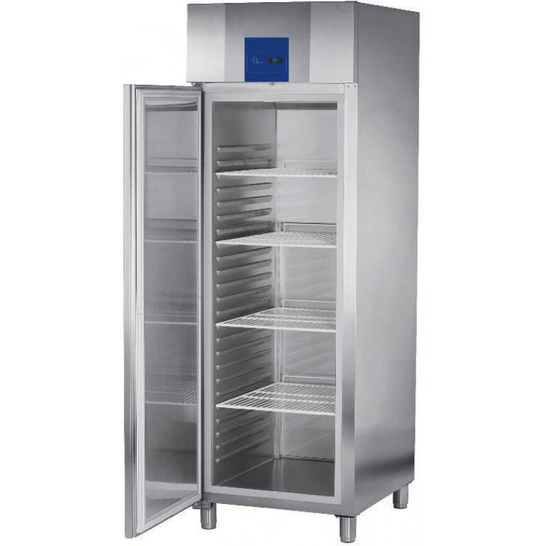 Нержавеющая сталь AISI 304, с водяным поддоном и сливом. Химически стойкая. Акклиматизированный герметичный компрессор без CFC. Автоматическое размораживание с электрической системой испарения воды. Регулируемые полки. Регулируемые опоры переднего уровня. Дверь может быть повешена для открытия, влево или вправо. Дверной замок.