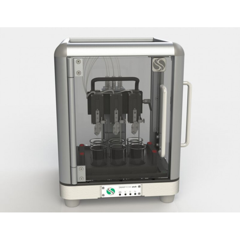 Дополните свою установку для зондирования современной станцией травления. С помощью автоматизированной станции травления SMARPROBE вы можете самостоятельно изготавливать наконечники для зондов, что экономит затраты и время. Процесс травления может быть настроен с помощью управляющего программного обеспечения для получения желаемой геометрии зонда и остроты наконечника, что позволяет создать идеальный наконечник для любой задачи. Уникальное отслеживание хода процесса травления и высокоскоростное обнаружение отсечки гарантирует получение воспроизводимых результатов с требуемым радиусом наконечника.
