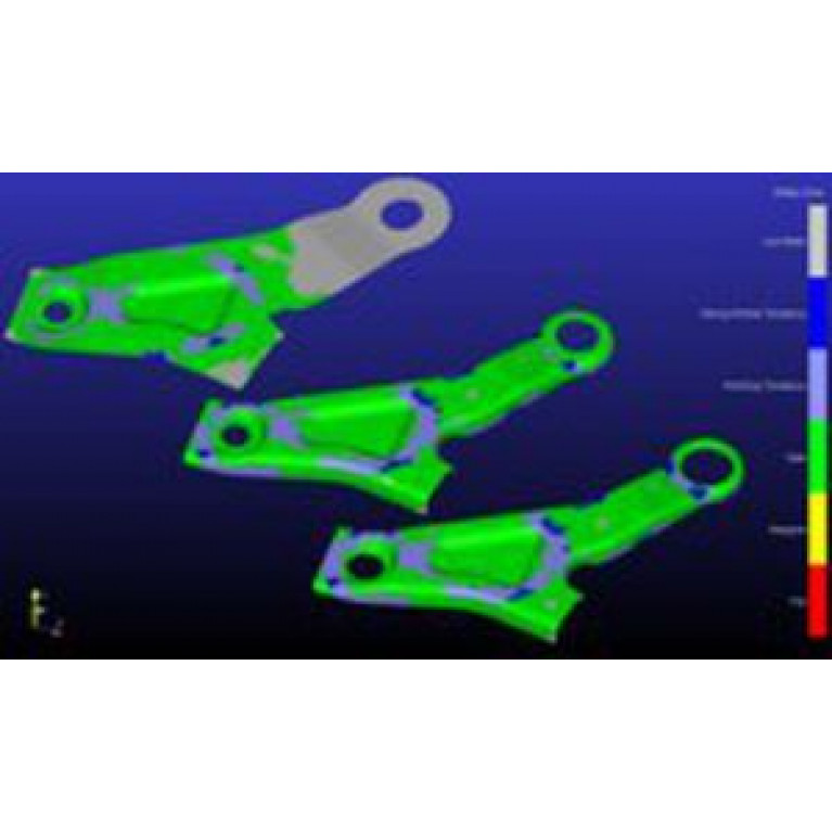 Упрощает толкование результатов путем показ специфических результатов formability для того чтобы показать разделять, сморщивать, и утончать на геометрии
